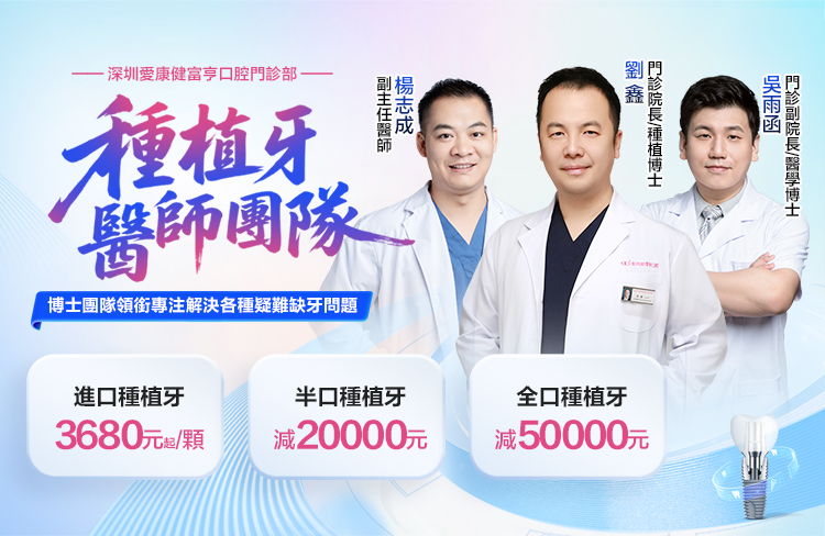 半口缺牙後,種植牙來修復是目前較為理想的修復方式,不僅可以解決牙齒缺失的問題,還能恢復正常的咀嚼功能,維持良好的牙齒外觀!愛康健齒科半口種植牙價錢:特價進口植牙3680元起/顆,半口美國進口種植牙42500元起,半口瑞典進口種植牙64900元起!合資格的香港長者在深圳愛康健口腔醫院植牙可使用香港醫療券,愛康健口腔種植牙腿甲李川院長,主治醫師,粵港資深種植修復專科醫師,從事口腔種植臨床工作近30年,累積完成缺失牙種植修復近10000例,擅長各種缺牙種植牙!深圳半口種植牙多少錢
